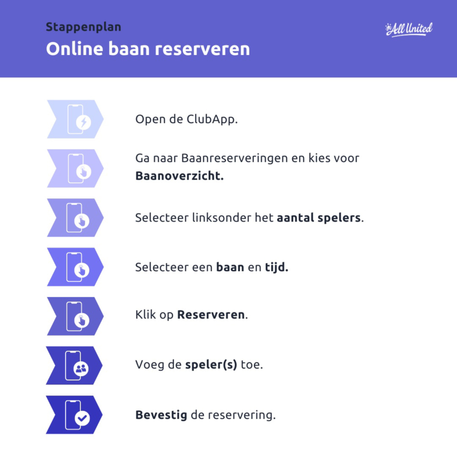 Er is een update geweest in onze clubapp waarmee je nu eenvoudig banen kunt reserveren! Kom je er niet uit? Geen zorgen!