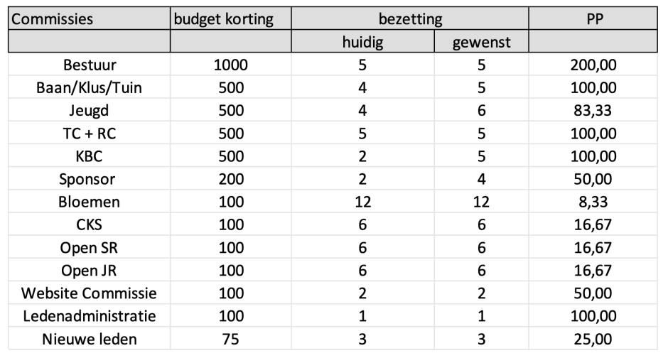 Vrijwilligers krijgen een contributie korting, zie onderstaand schema.